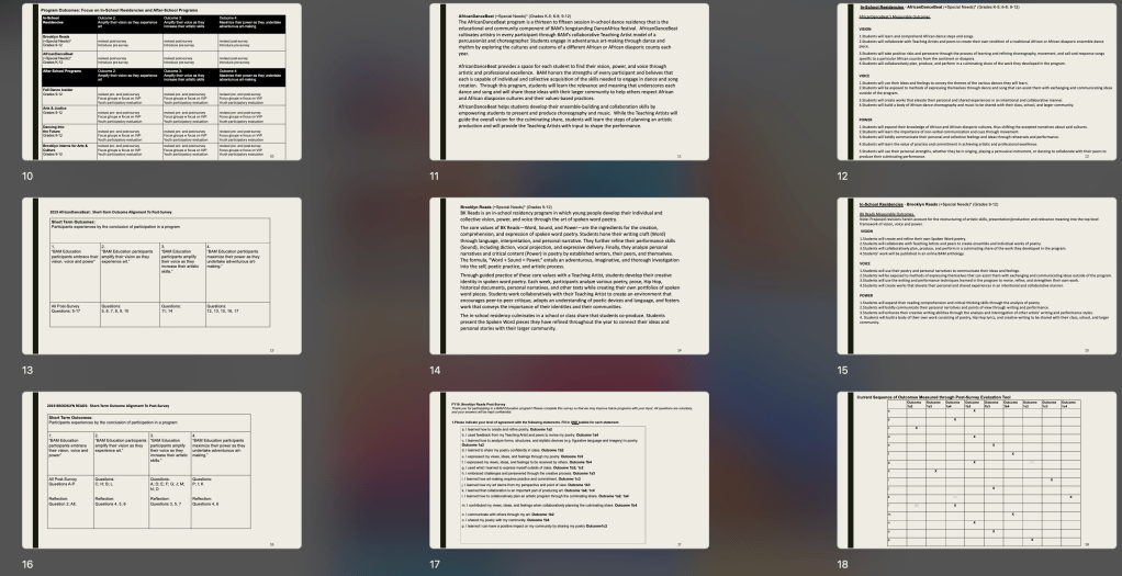 Project Description: In coordination with BAM’s Department of Education, Dr. Bishop was responsible for providing the following services and deliverables with the overall goal of supporting the further development of evaluation strategy at BAM: